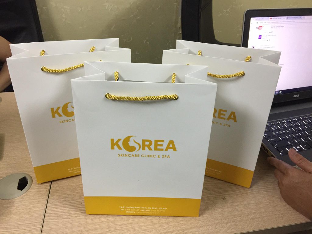 - Túi Đựng Mỹ Phẩm: Túi KOREA Skincare với thiết kế sạch sẽ, tông màu trắng – vàng chủ đạo, truyền tải sự tin cậy và chuyên nghiệp.