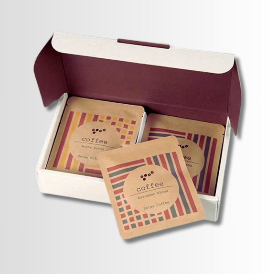 Cà Phê & Trà: Hộp đựng quà tặng hoặc túi nhỏ (như mẫu cà phê) với thiết kế màu sắc ấm áp, ấn tượng, thể hiện sự tinh tế của sản phẩm.