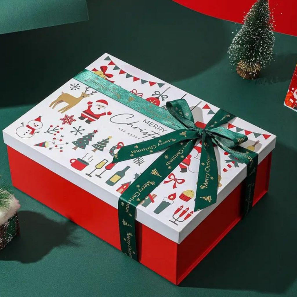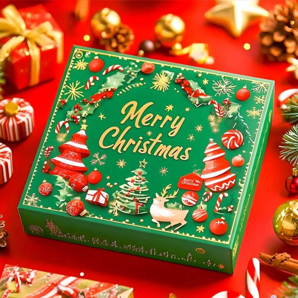 Họa tiết Đa dạng: In các hình ảnh quen thuộc như Ông Già Noel, tuần lộc, cây thông, kẹo gậy với độ sắc nét và màu sắc tươi tắn (tham khảo mẫu In Hộp Quà Tặng Giáng Sinh).