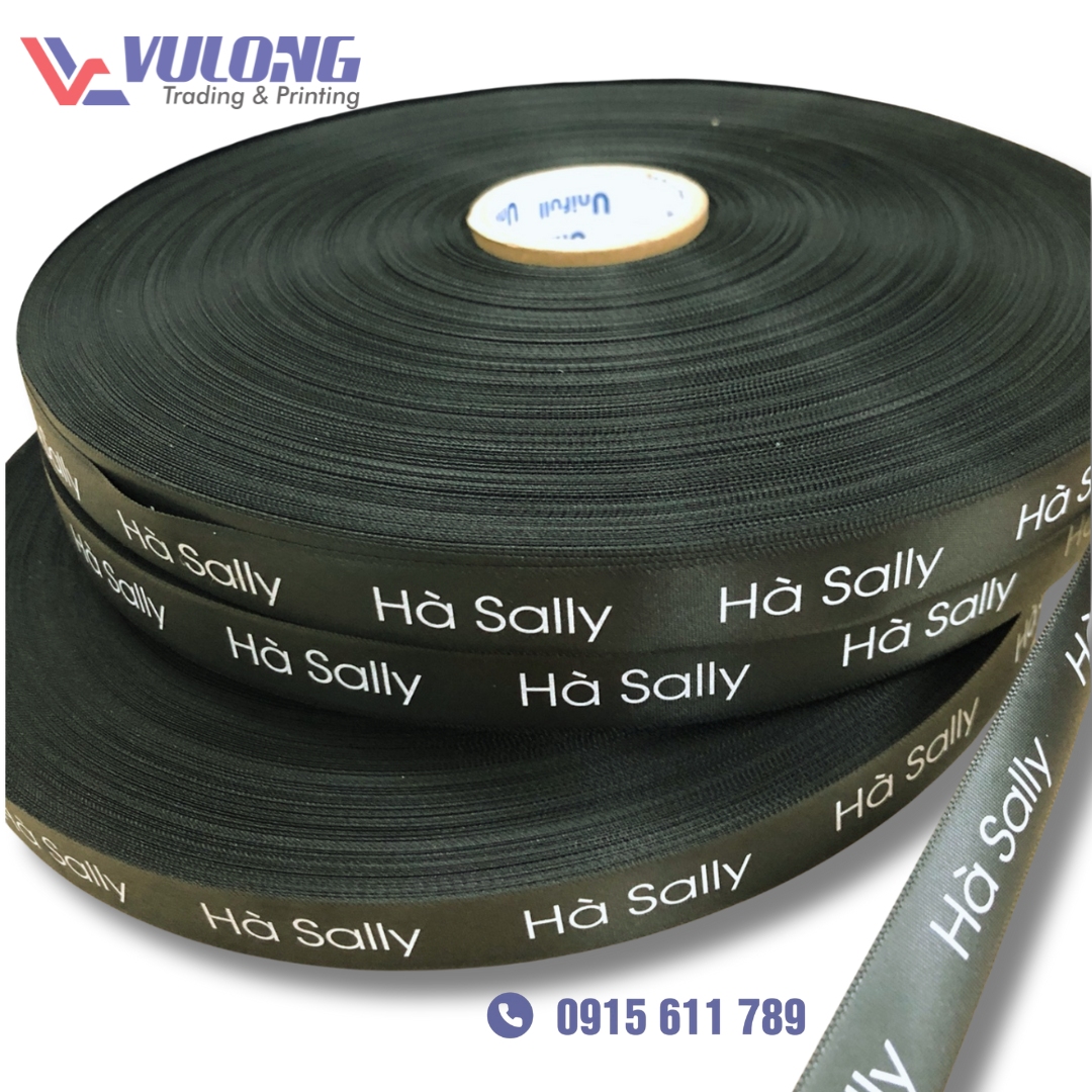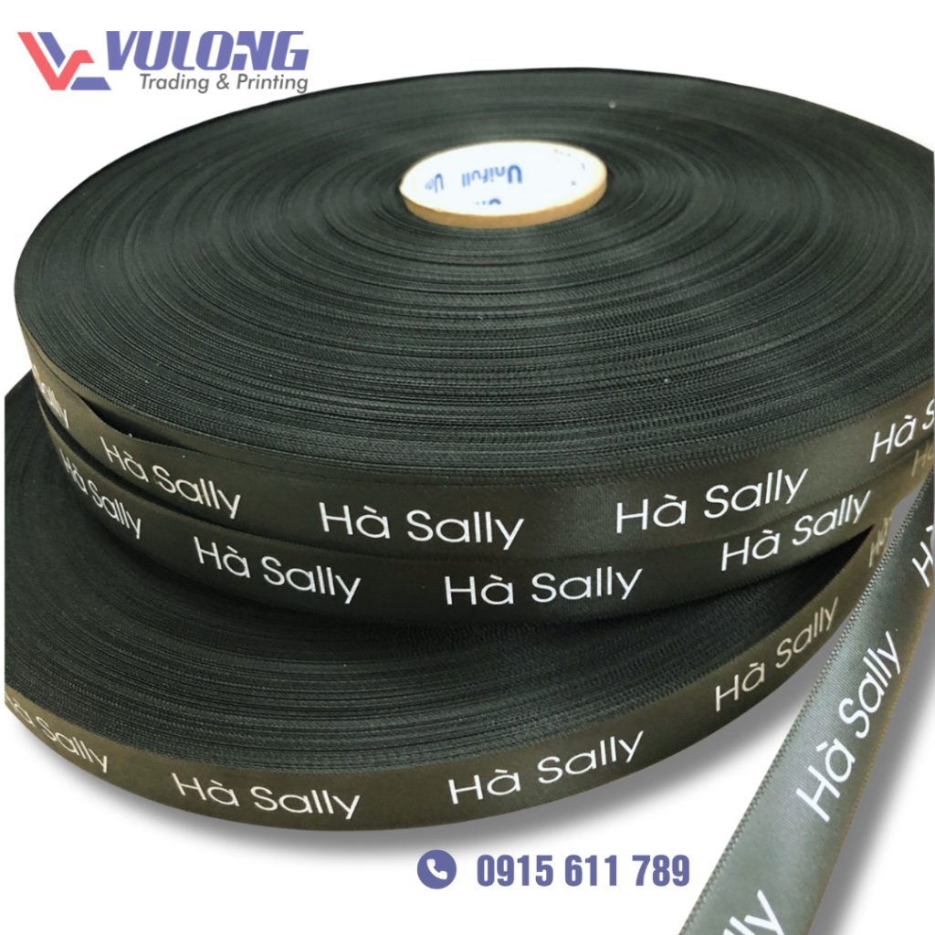 Dây Ruy Băng (Satin/Ribbon): In logo thương hiệu dùng để gói quà hoặc làm dây nơ trang trí, tăng trải nghiệm khách hàng (như mẫu ruy băng Hà Sally).