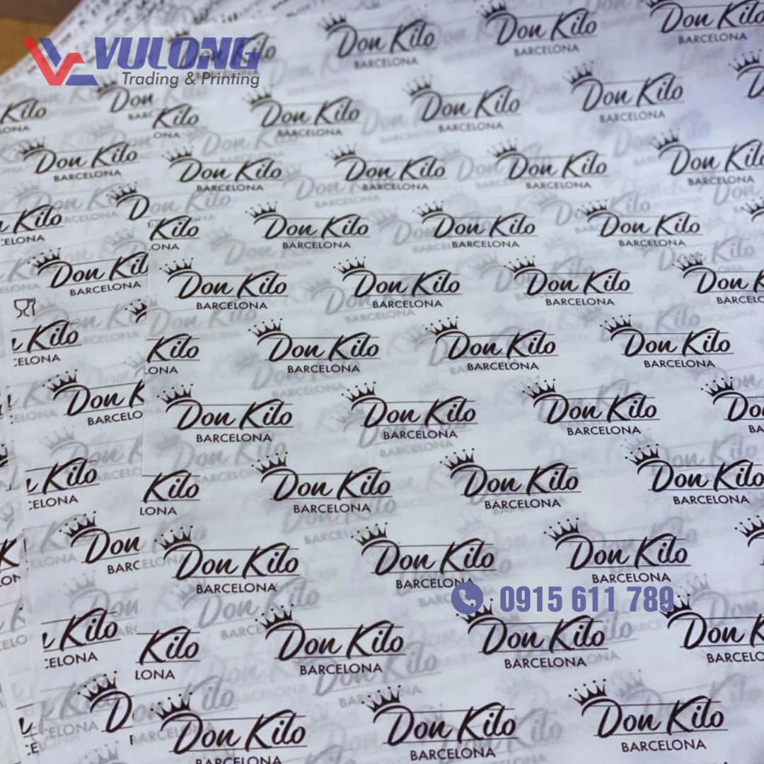 Giấy Gói (Tissue Paper): In logo thương hiệu mờ lên giấy hút ẩm, bọc quần áo/giày dép (như mẫu giấy Don Kilo).